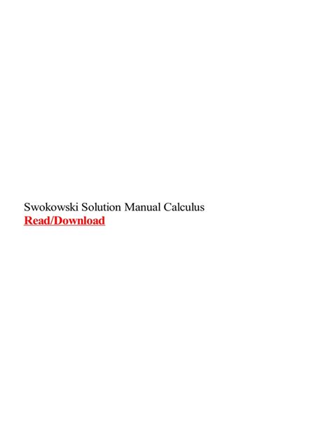 Read Online Swokowski Calculus The Classic Edition Solution Manual Pdf Library Binding BookBoon